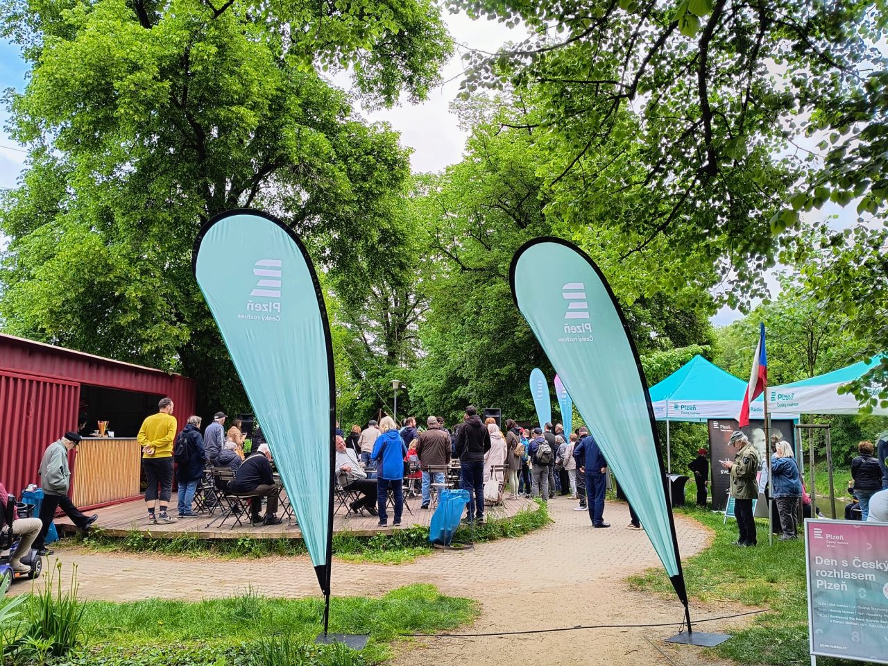 Živým vysíláním z místa zvaného Obcizna na soutoku Mže a Radbuzy pod pivovarem začal Den s Českým rozhlasem Plzeň 5. května 2025.
