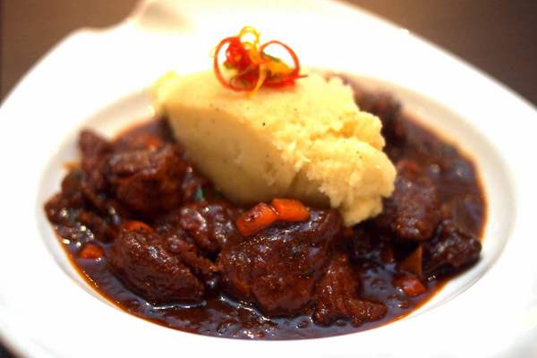 Když je maso měkké, přidáme majoránku, přilijeme vodu s hladkou moukou a povaříme.