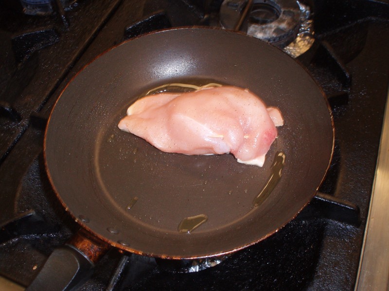 Kuřecí plátky otřeme vlhkým ubrouskem a osušíme. Lehce je naklepeme, osolíme, opepříme, pokapeme olejem a necháme je v chladu asi 1 hodinu odležet. V nádobě rozpálíme olej a připravené plátky masa v něm z každé strany asi 3 minuty opečeme. Opečené maso vyjmeme, do výpeku přidáme hořčici a smetanu. Promícháme a omáčku krátce povaříme. Je-li třeba, dosolíme.