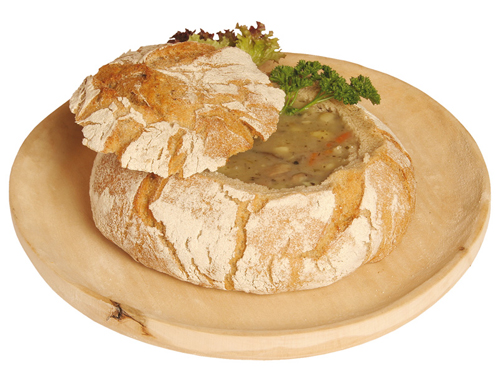 Domácí chlebové bochníky jako misky pro bramboračku
