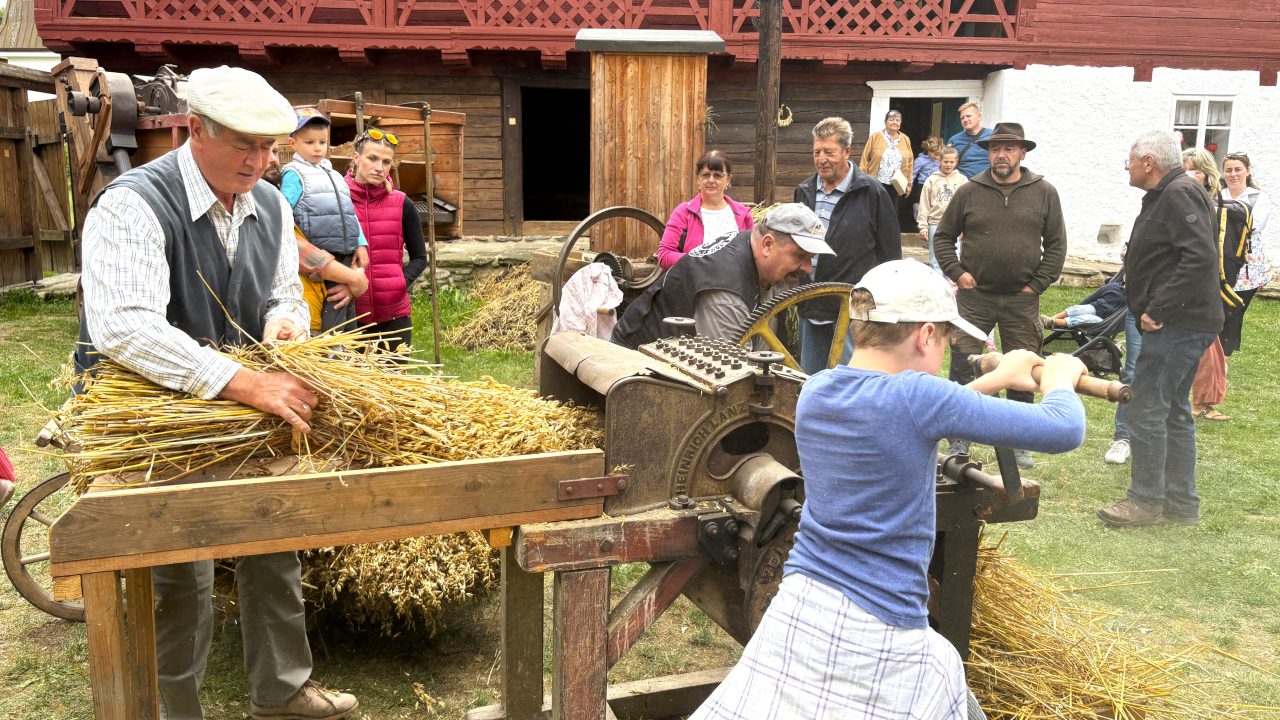 Součástí programu byla také prezentace historické mlátičky vyrobené ve Vídni. „Je to špinavá práce, plná prachu. Ale i tak to byl výrazný pokrok oproti ručnímu mlácení cepy. Bylo to o dost rychlejší a méně namáhavé,“ popsal Augustin Špicl. Návštěvníci oceňovali zejména autenticitu a možnost nahlédnout do minulosti.