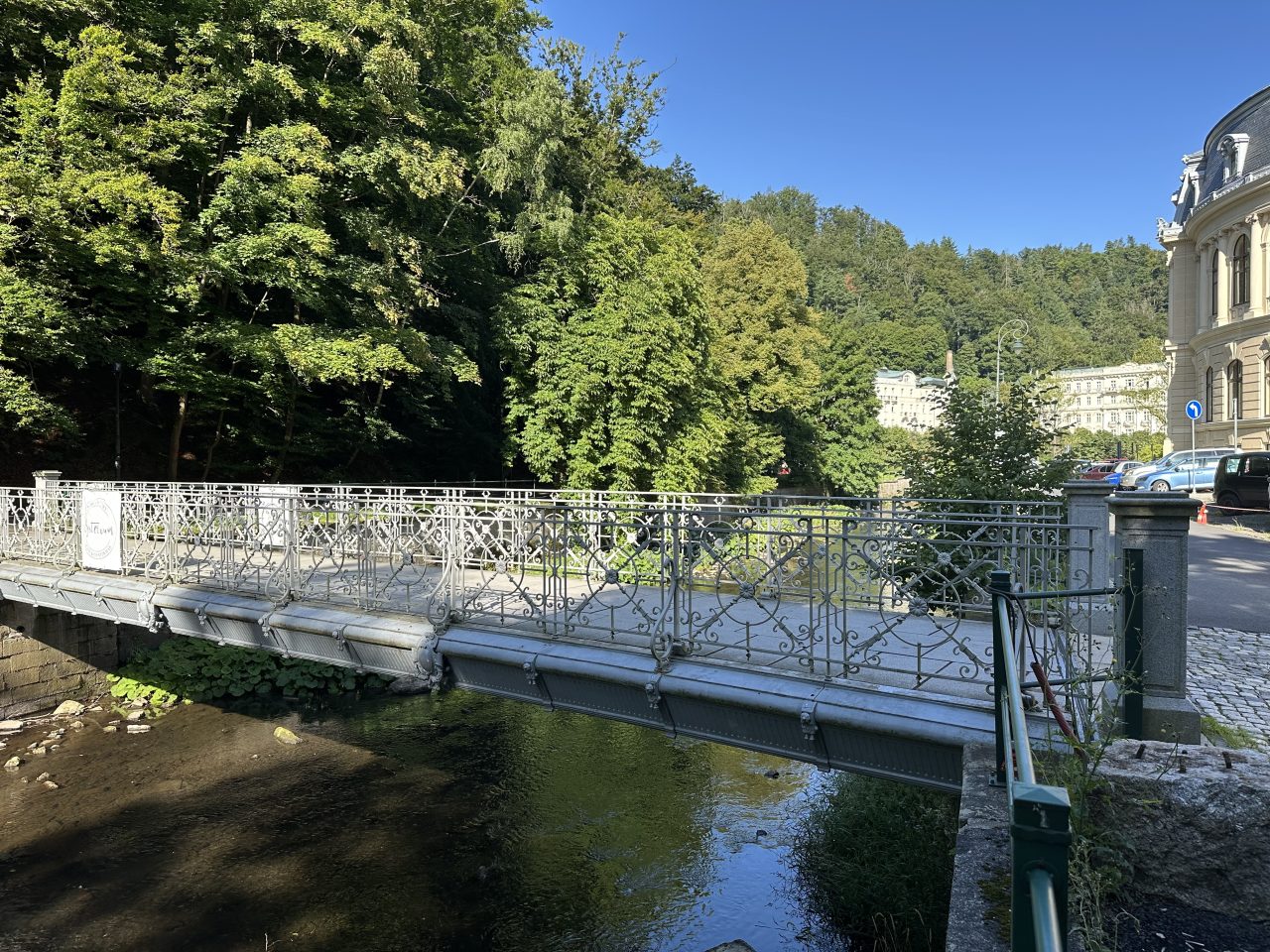 Goethova lávka v Karlových Varech. Most, který se umí sklonit před velkou vodou