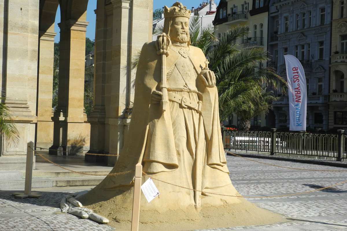 Pískové sochy v Karlových Varech patří k oblíbeným cílům turistů. K symbolickému zviditelnění jim paradoxně pomohla nehoda. Socha Karla IV. se bezprostředně po dokončení sesula a umělec ji musel zhotovit znovu. Dílo navíc částečně poškodila jedna ze zahraničních turistek. Škody byly naštěstí minimální. Město Karlovy Vary za tři pískové objekty zaplatilo 290 tisíc korun.