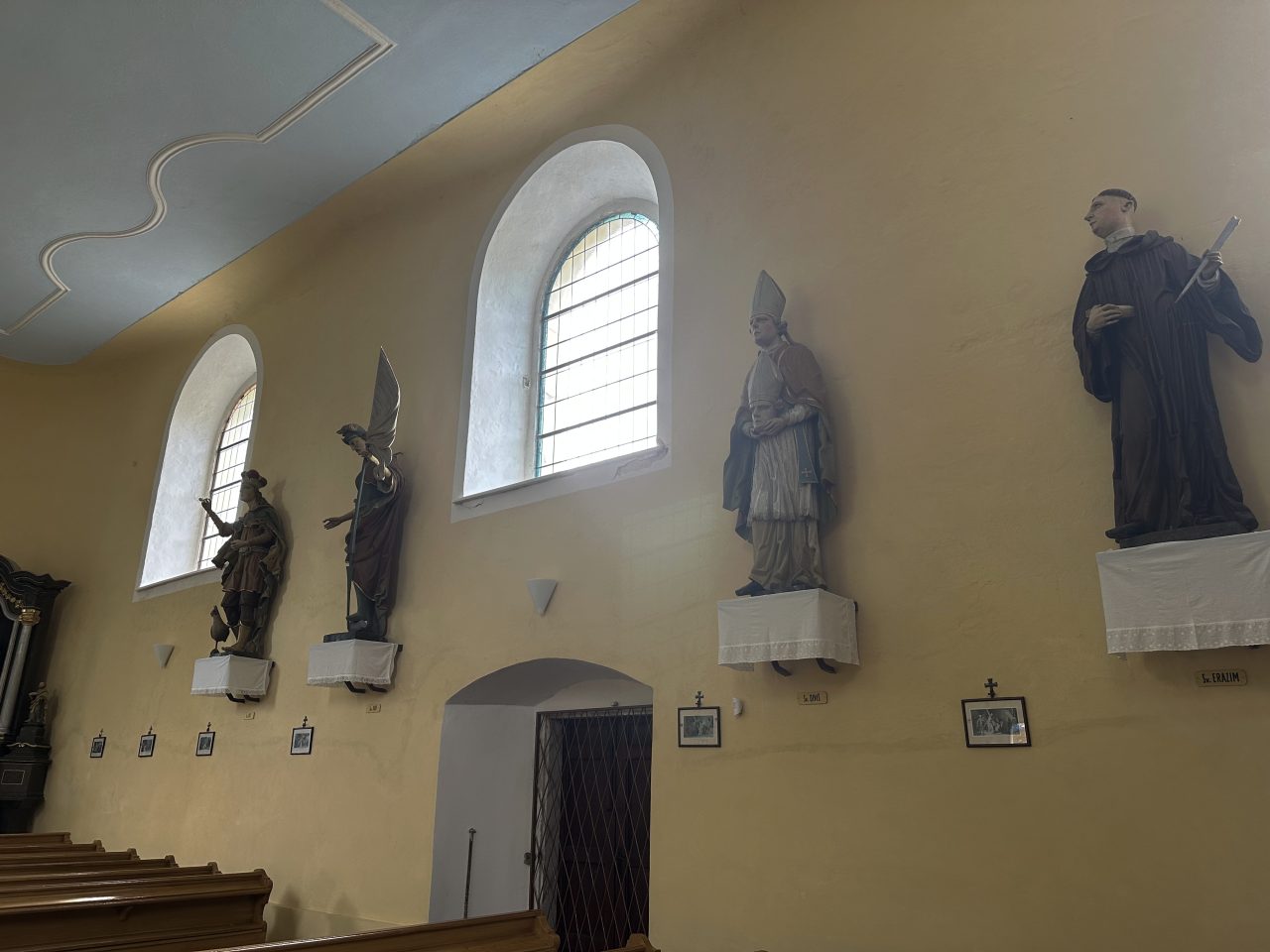 „Náš kostel je zasvěcený čtrnácti svatým pomocníkům v nouzi a sochy těch čtrnácti svatých pomocníků byly převezeny ze zrušeného kláštera ve Světcích u Tachova,“ doplňuje Strnadová.