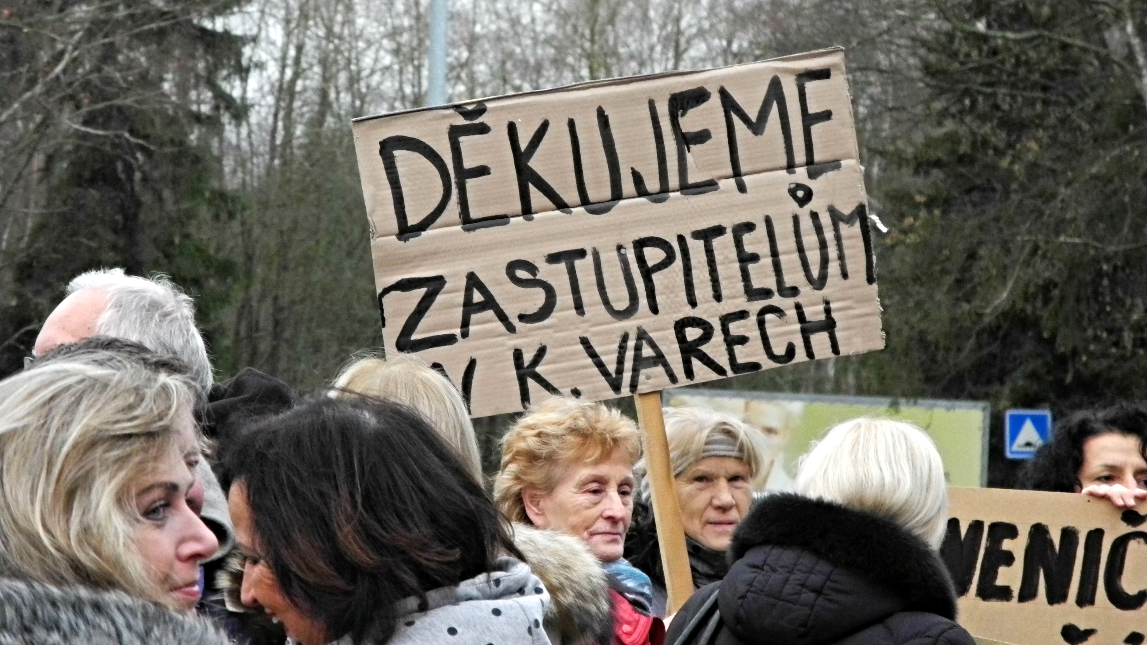 Před karlovarským letištěm se sešlo na desítky lidí, aby zastoupili obyvatele okolních obcí. Petici za zrušení záměru zřízení letecké školy podepsalo přes 1,2 tisíc lidí. Protest doprovázely transparenty, potlesk, ale například také zvuk sekaček, který měl napodobit nepříjemný zvuk, který tu lidé očekávají.