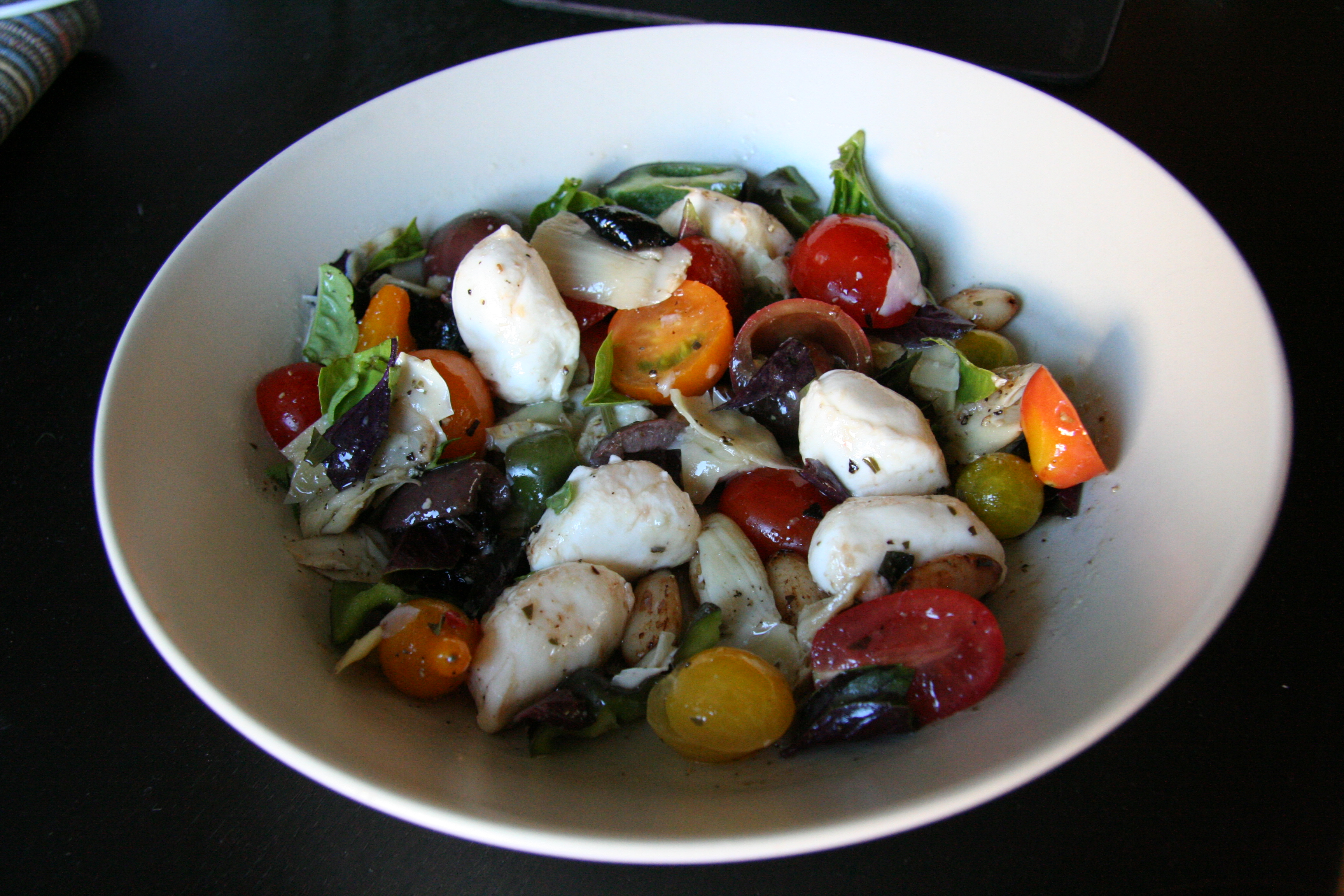 Mozzarellu nakrájíme na kousky nebo použijeme cherry mozzarellu, česnek nakrájíme na plátky.