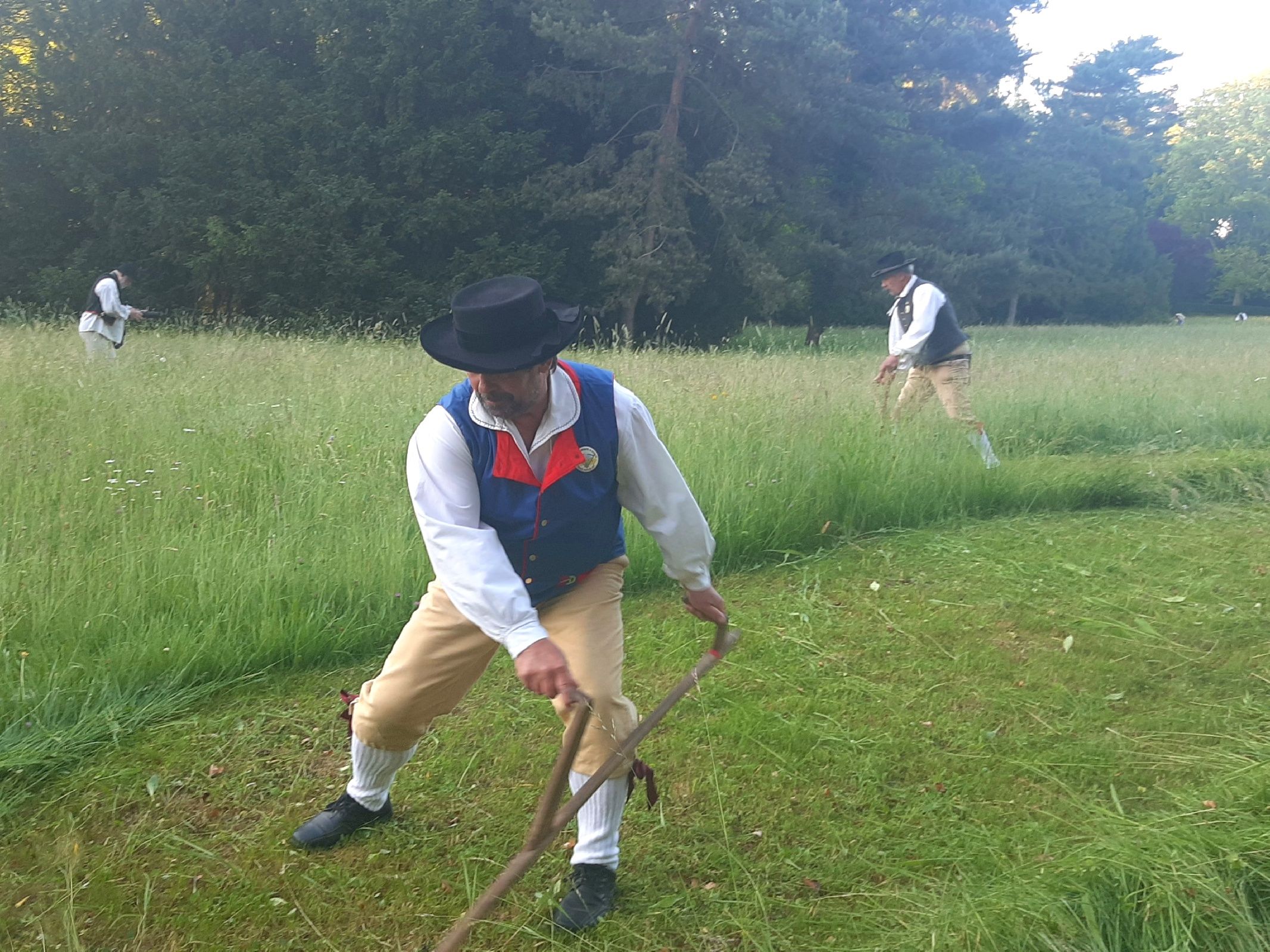 Muži s kosami pod hradem Buchlov
