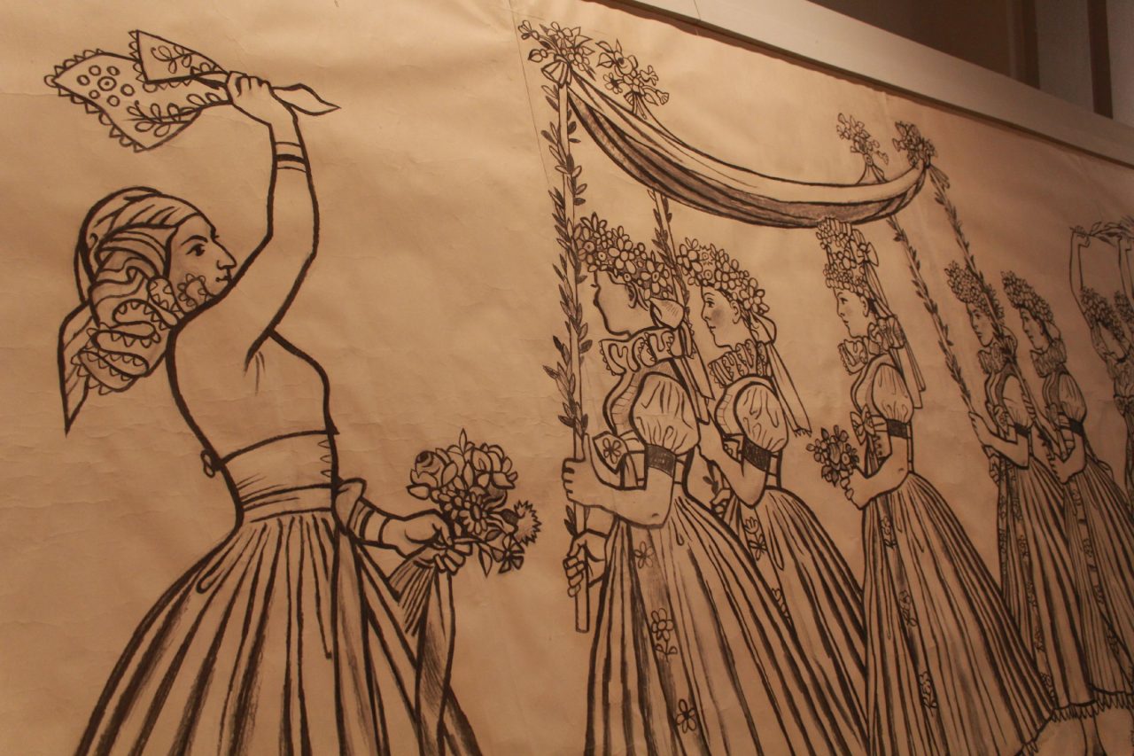 Ze skleněných kamínků jsou vytvořeny postavy dělníka s klíčem, chemika s baňkou, k folklorním hanáckým motivům patří jízda králů a průvod královniček. Měsíce po stranách 14 metrů vysokého a 5,5 metru širokého výklenku jsou symbolizovány činností rolníků. „Celkově je mozaika složena z přibližně čtyř milionů skleněných kostiček a kamenů o velikosti průměrně dva krát tři centimetry. Sedmdesát let vydržela nejrůznější vlivy počasí, takže je úžasnou ukázkou mozaikářského řemesla,” hodnotí historik.