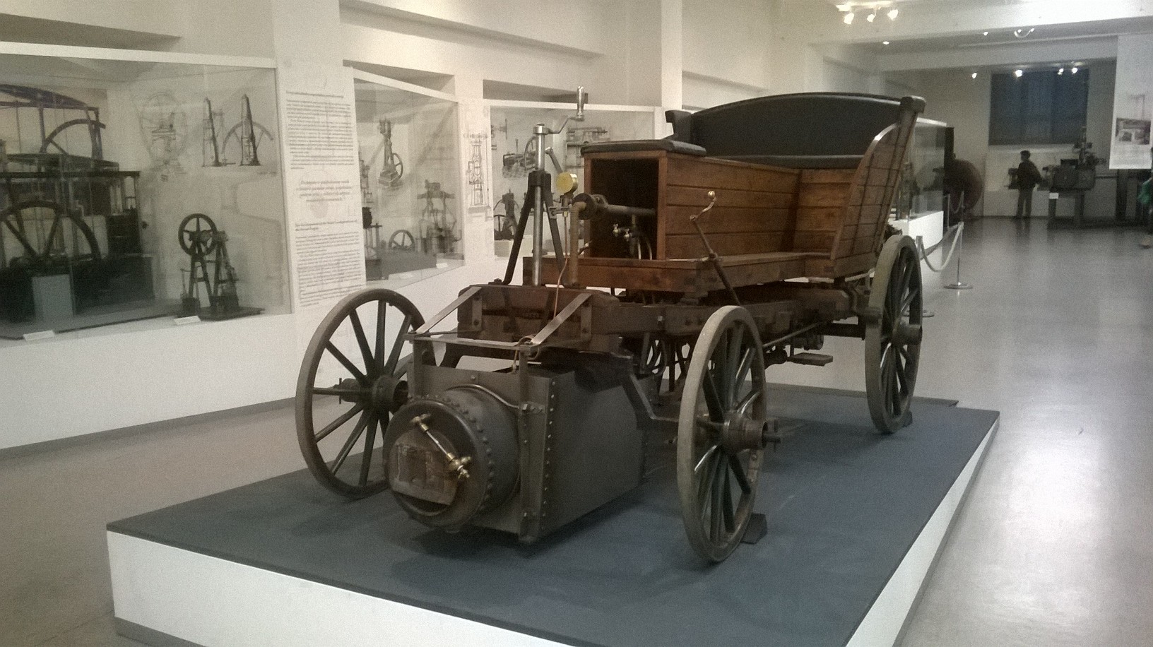 Jeho parovůz se podobal kočáru s vypolštářovanou dřevěnou korbou zavěšenou na železném podvozku. Mezi předními koly měl měděný kotel a pára z něj uváděla do pohybu dva válce.