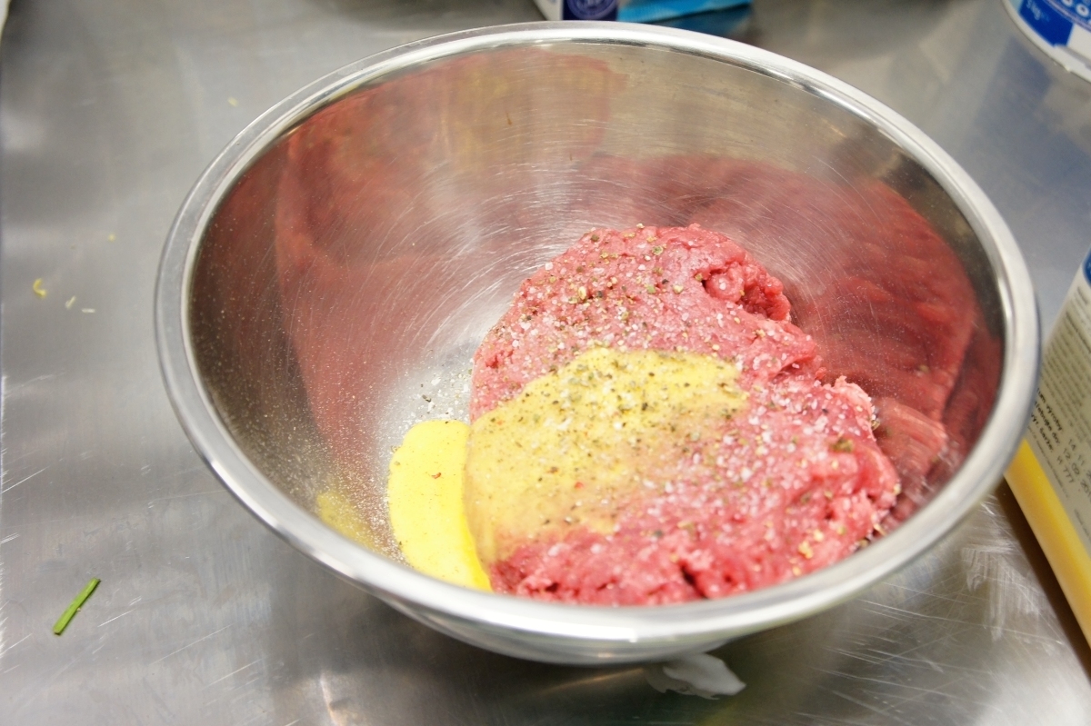 - V míse smícháme mleté vepřové maso a vajíčka.