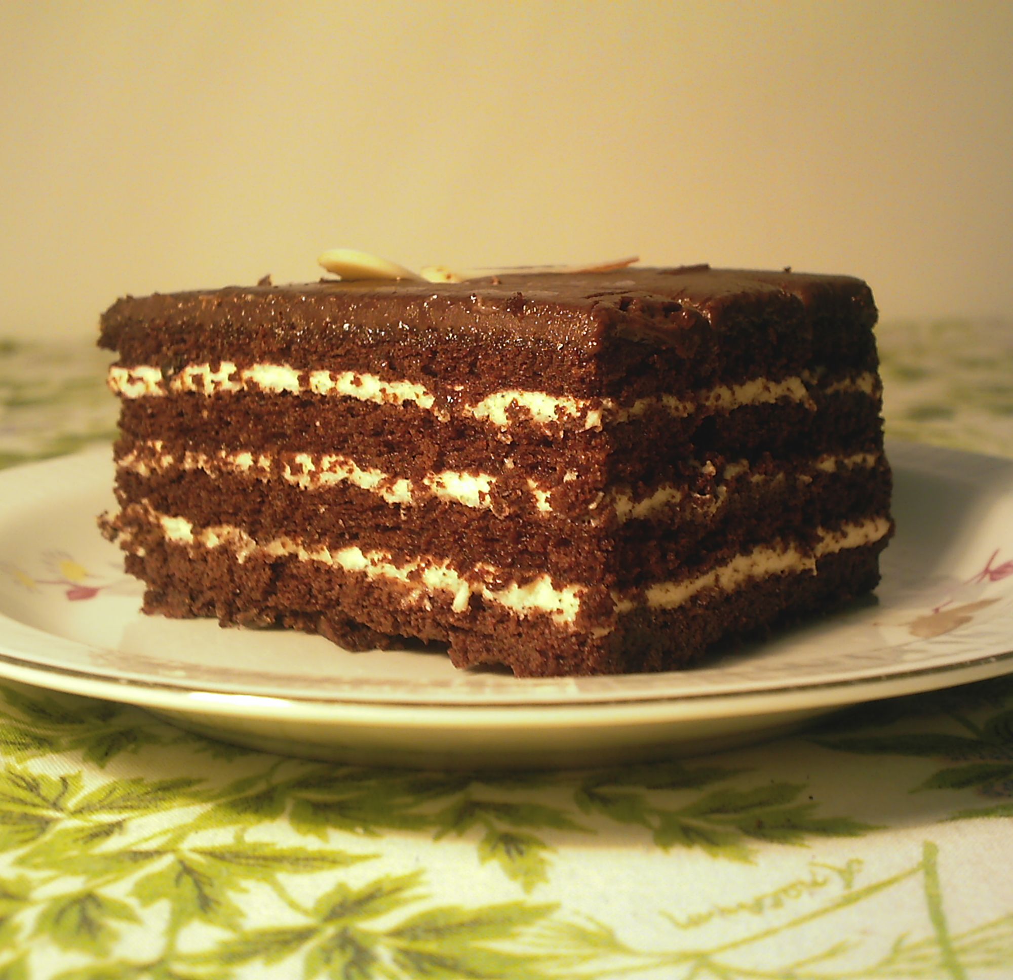 Žloutky utřeme s cukrem a vodou do pěny, přimícháme mouku s práškem do pečiva a nakonec sníh s bílků. Pečeme asi 10 minut na 180 stupňů. Než piškot vychladne, uděláme si krém: Změklý tuk vyšleháme s cukrem přidáme tvarohy, vanilkový cukr, rum a vyšleháme do hladka. Krém natřeme na vychladlý piškot a připravíme si polevu: Puding uvaříme v džusu a mírně vychladlý rozetřeme na krém. Hotový moučník před podáváním vychladíme v ledničce.