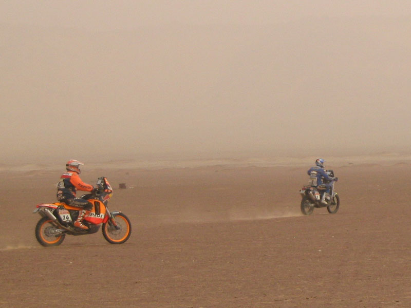 Portugalec Helder Rodrigues na Yamaze vyhrál dnes v kategorii motorek a také potvrdil, že dnešní poslední mauretánská etapa okolo Némy byla velmi technická: "Desátá etapa byla opravdu technická, což mi pomohlo bojovat s ostatními závodníky. Na rychlých úsecích jsem trochu ztrácel, ale v technických pasážích je moje Yamaha 450 lehčí a díky tomu jsem si čas zase najel. Je to moje první vítězství v Africe. Loni jsem byl nejlépe třetí." Časy druhého Comy a třetího Desprése se vešly do 1 minuty za vítězem dnešní etapy. Vítěz včerejší etapy Janis Vinters dojel čtvrtý. Celkově ale stále vede Španěl Mark Coma o téměř 55 minut před Cyrilem Desprésem. "Dnešní etapa mi připadala jako dlouhý sjezd na lyžích, který je velmi náročný na ruce a nohy. Byla to fyzicky i psychicky vyčerpávající etapa, ale velmi důležitá pro navigaci," řekl Després. Třetí je Francouz David Casteu se ztrátou hodinu a čtvrt. (všichni na KTM).