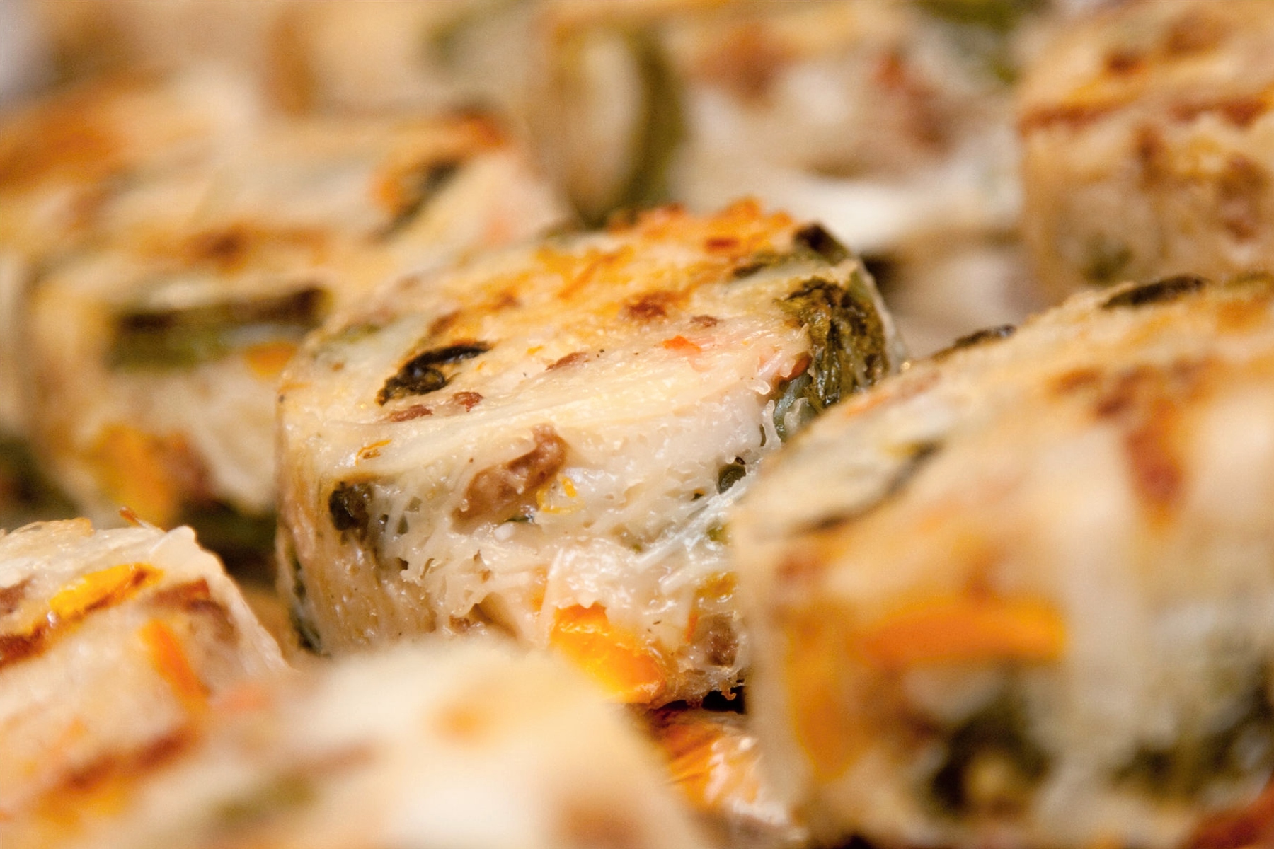 Nudle přecedíme a rozdělíme do formiček. Na to dáme zeleninu a nakonec zalejeme vejci.