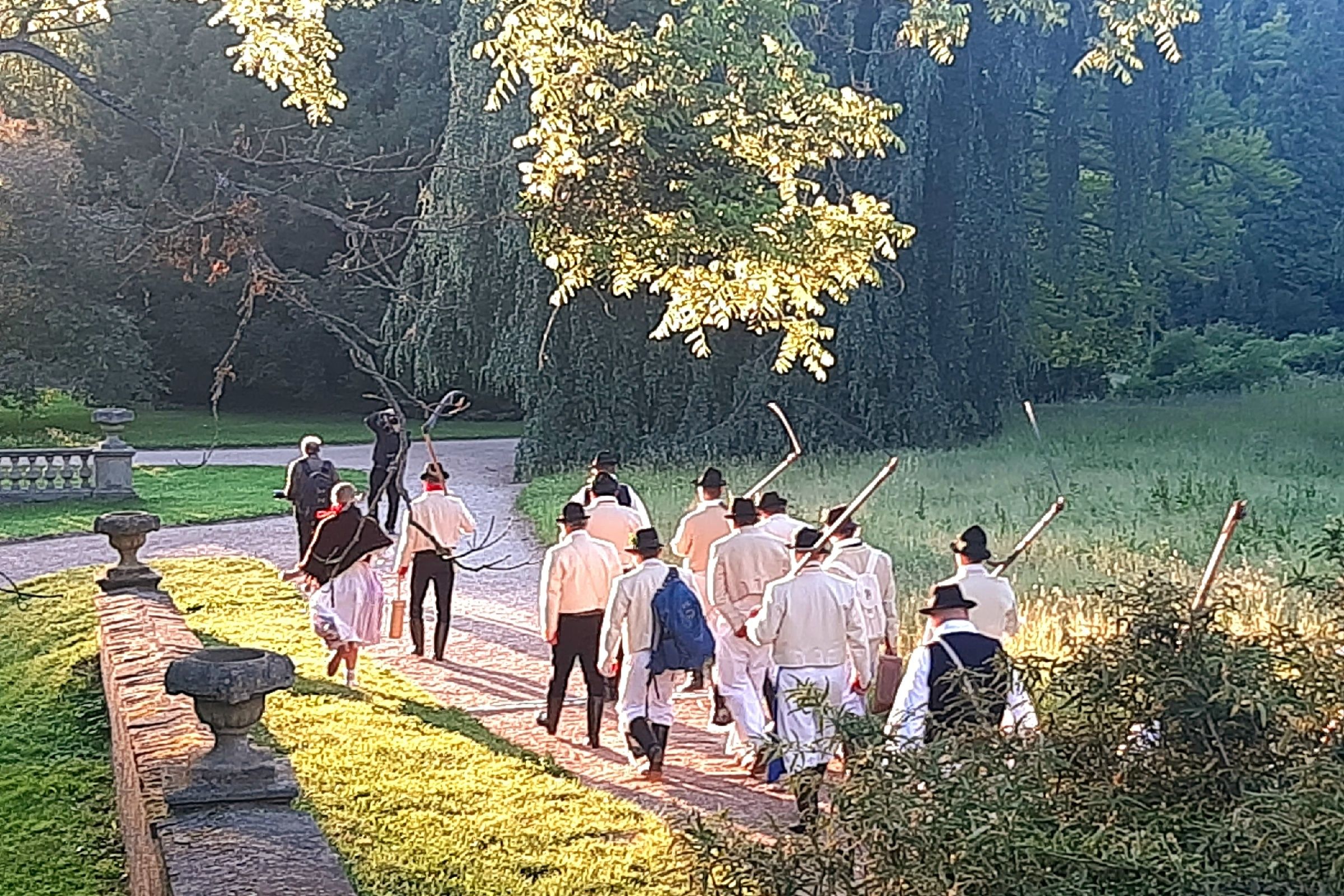 Obě tyto zásadní zásadní činnosti byly spojeny s bravurním ovládáním prastarých nástrojů, jimiž byly kosy a srpy, s časným vstáváním, zpěvem a také s láskou a namlouváním. A tento obraz starých časů se každý rok daří vytvořit na zámeckých loukách v Buchlovicích na Uherskohradišťsku.