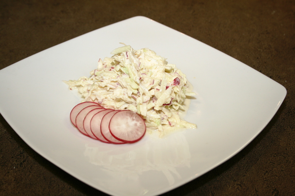 Kysané zelí vysypeme ze sáčku, slejeme, necháme odkapat, ale neproplachujeme. Zelí a cibuli pokrájíme, šunku nakrájíme na kostičky, sýr nastrouháme nebo také nakrájíme. Vše zamícháme. Přidáme kukuřici, majonézu nebo zakysanou smetanu, sůl a pepř.