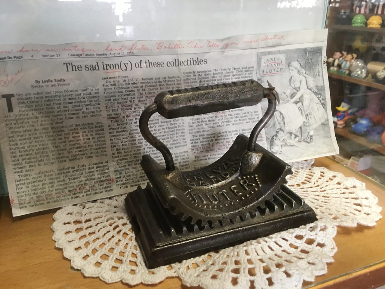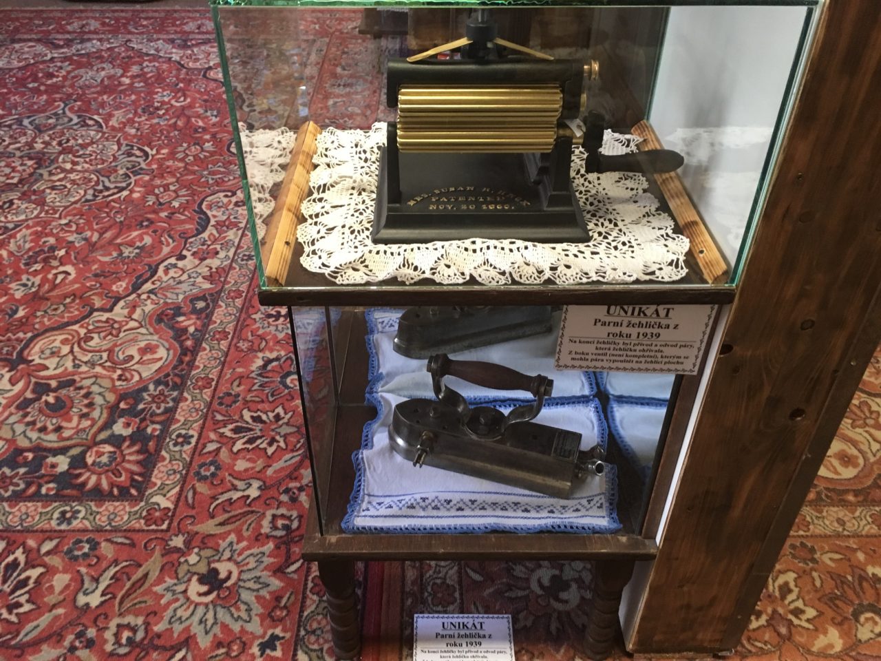Další vzácností je plynový ohřívač na dvě žehličky z první poloviny 20. století, který se do muzea dostal ve velice špatném stavu. Majitelka ho ale díky svým restaurátorským dovednostem dokázala vrátit do původní podoby.