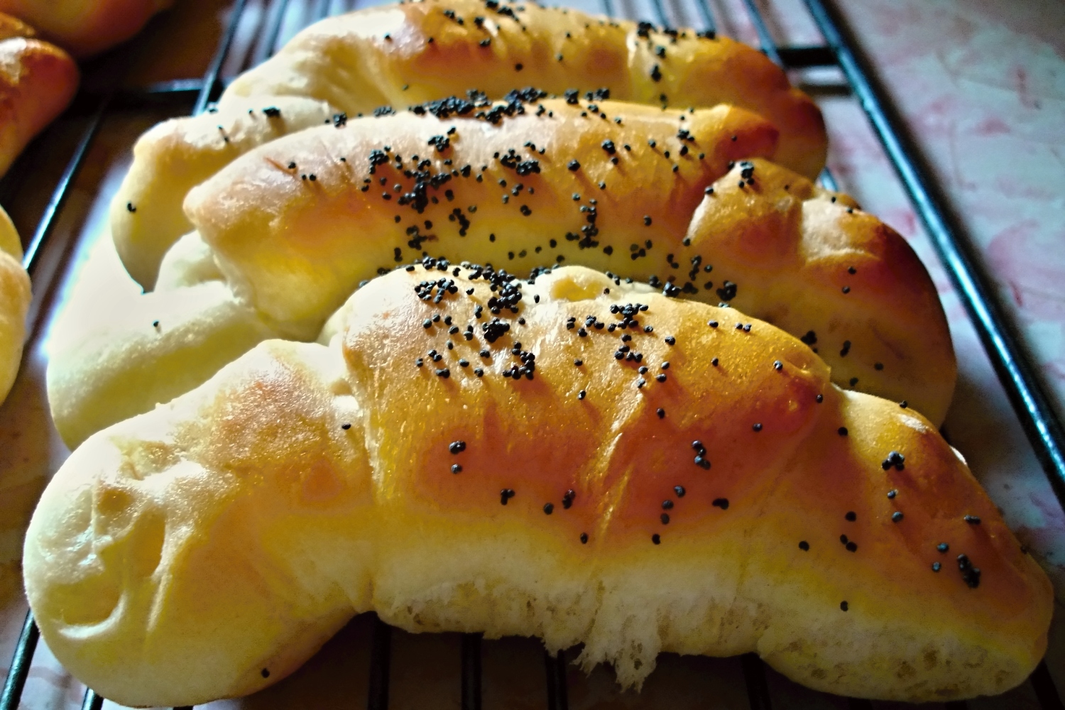 Náplň položíme na nejsilnější část trojúhelníčku, zavineme do špičky, zahneme do tvaru podkovy a utěsníme.