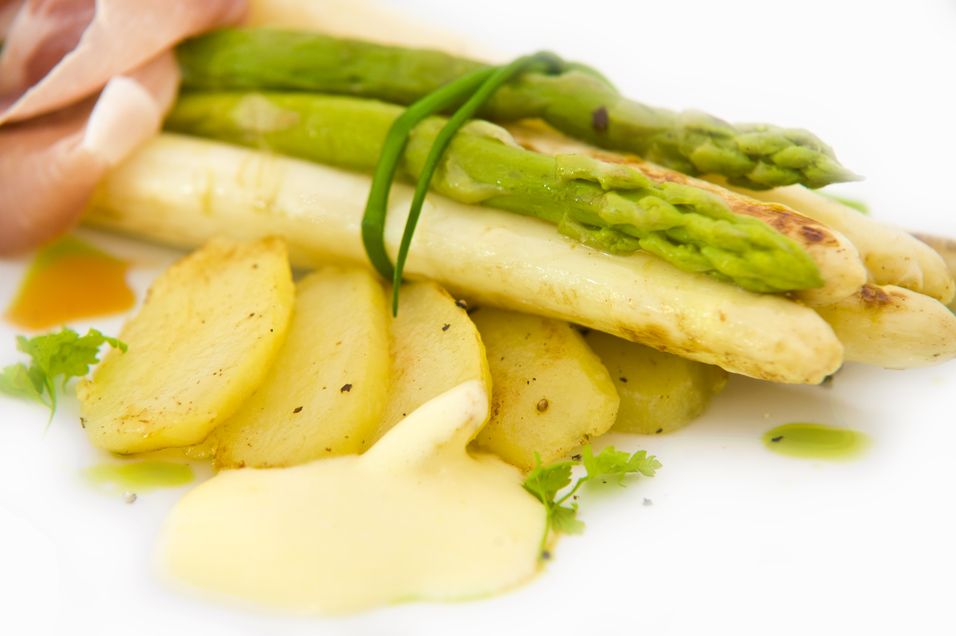 Chřest uvaříme ve větším množství vroucí osolené vody po dobu 8 - 10 minut, dokud chřest nezměkne. Necháme okapat, vývar slijeme a schováme. Plátky masa naklepeme paličkou na plátky silné cca 3mm, položíme na ně dušenou šunku a 2 - 3 stvoly chřestu. Zavineme a dochutíme solí a pepřem. Zavinuté plátky pak obalíme do plátků parmské šunky a takto upravené opečeme na másle a olivovém oleji. Přidáme bobkový list a opékáme maso dohněda. Pak podlijeme vínem a necháme redukovat na mírném plameni. Nakonec přilijeme chřestový vývar a na středním plameni necháme omáčku zhoustnout. Do pánve pak přidáme zbytky nakrájeného chřestu, pár minut podusíme, dochutíme solí a pepřem.