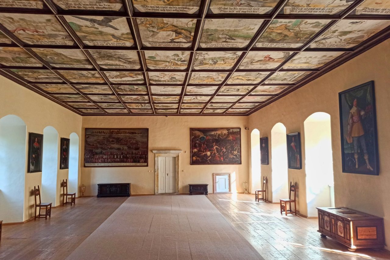 Součástí prvního prohlídkového okruhu je také Rytířský sál. „Jedná se o barokní sál vystavěný v souvislosti s barokní představou zámků v druhé polovině 17. století.