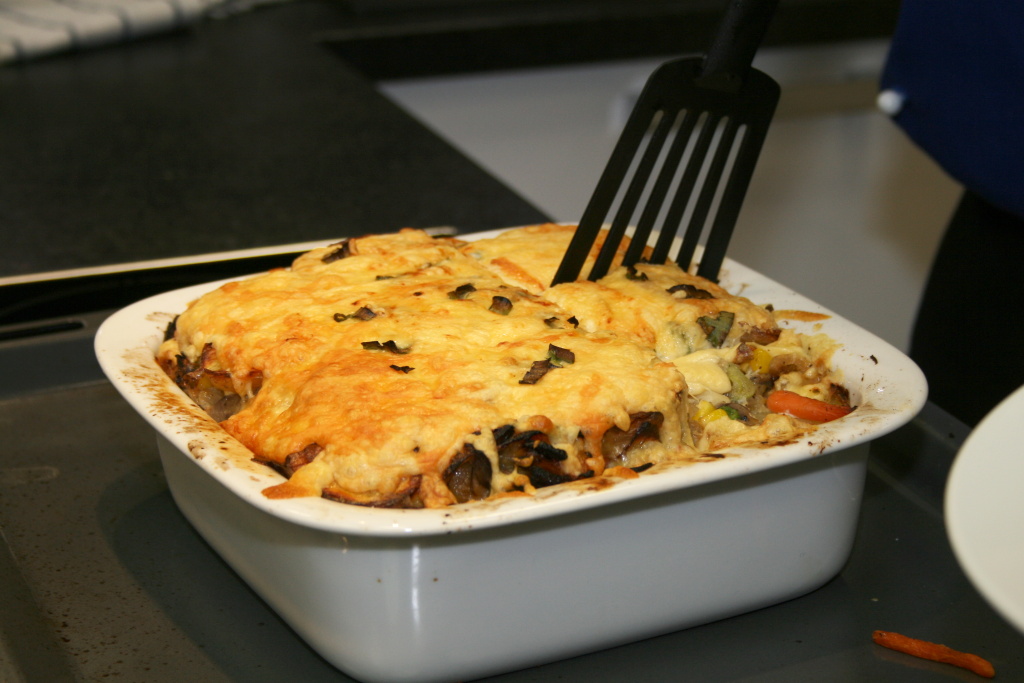 Zapečené brambory s cuketou a sýrem